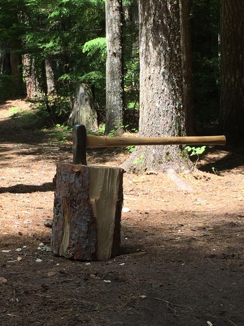 Some people look at that and see an axe in a log, and at first that’s what I saw too. But as I looked at it longer, I saw something else in the splintered handle, the wood chips, the heavily scarred surface of the log, the split off edges and peeled bark.